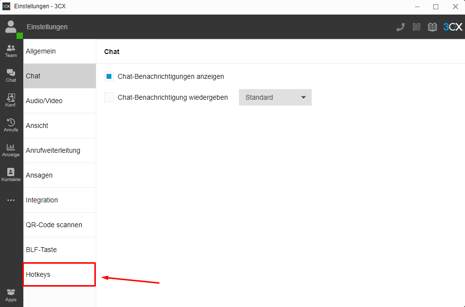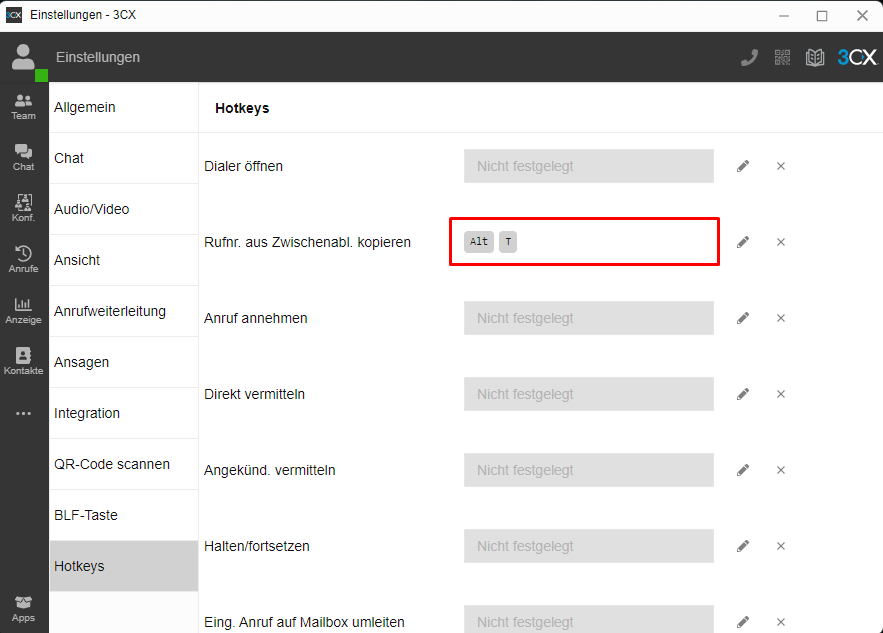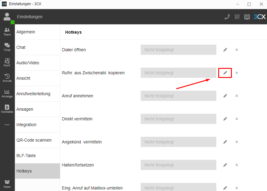 Hotkey für Anrufe einrichten - 3CX V18