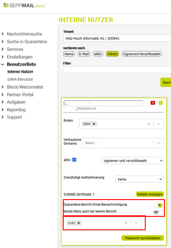 Quarantäne-Bericht aktivieren - SEPPmail.Cloud