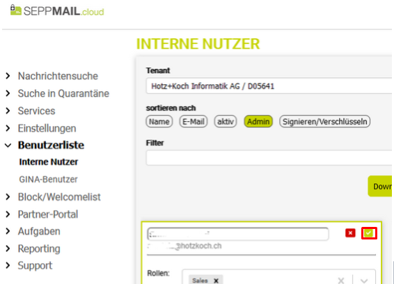 Unter Benutzerliste->Interne Benutzer, den eigenen Tenant (Name des Unternehmens) aus den Dropdown Feld auswählen.
