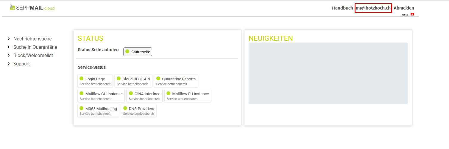 Als Benutzer bei SEPPmail.Cloud anmelden: https://login.seppmail.cloud/