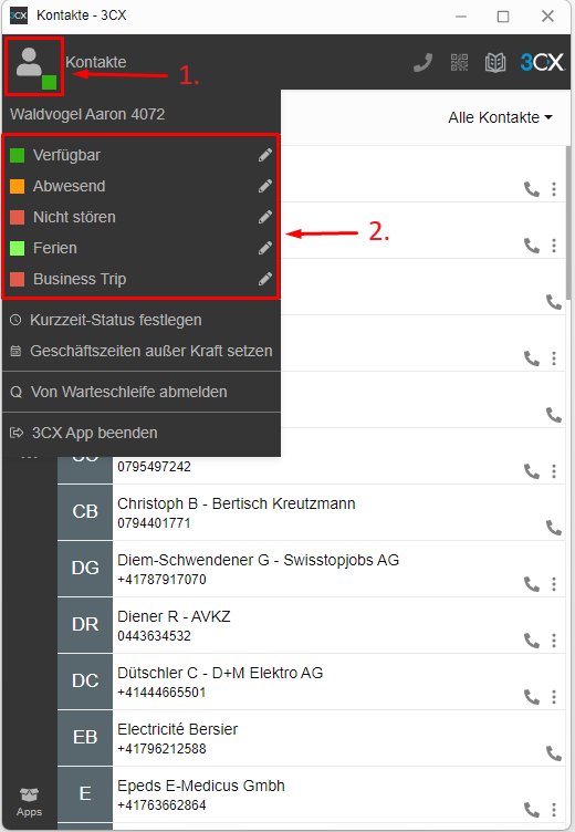Je nach Konfiguration ihres 3CX PBX, kann man anhand seines Status beeinflussen, ob man Anrufe erhält oder nicht. Wie diese Änderung auf Mobile und PC macht, wird hier im Detail genau beschrieben.